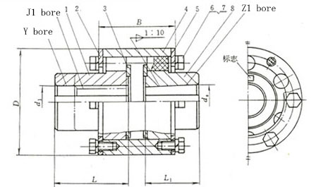 The elastic pin of the LZD type elastic pin gear coupling is turned by a nylon rod and placed in the matching hole between the two coupling halves and the outer sleeve, and transmitted through the elastic pin between the coupling and the outer sleeve. Moment, with a certain axis offset compensation and shock absorption performance. The pin can be removed and installed, and the baffle can be changed. The material is self-lubricating material and nylon is not required to be lubricated. Therefore, the LZD type elastic pin gear type coupling is easy to maintain, and has the advantages of small volume, light weight, simple structure, convenient replacement and low production cost compared with the toothed coupling. The LZD type elastic pin gear type coupling transmits a nominal torque of 100~100000N.m; the allowable speed is 4000~1500r/min; it belongs to the low speed high torque coupling. The LZD type elastic pin gear coupling is made according to the standard of GB/T5015-2003; the working temperature is -20~70°C; the axial compensation amount is ±1.5~3mm; the radial allowable compensation is 0.3~1.5mm; the angular tolerance is 0.5°. In addition, the biggest difference between the ZL (now LZ) type elastic pin gear coupling and the LZD type elastic pin gear coupling is that the LZD type pin gear coupling allows the shaft hole of one end of the coupling to be tapered. hole .![]() |