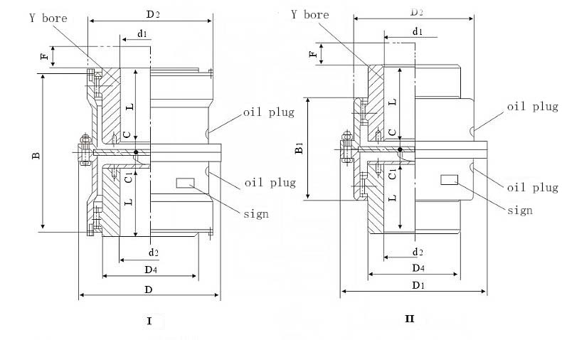 Type I--The sealed end cap is of separate type with large tooth spacing, which can allow large radial displacement and can be connected with Y, J1 and Z1 shaft extensions;