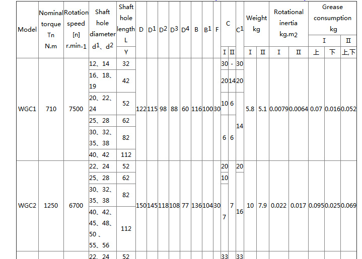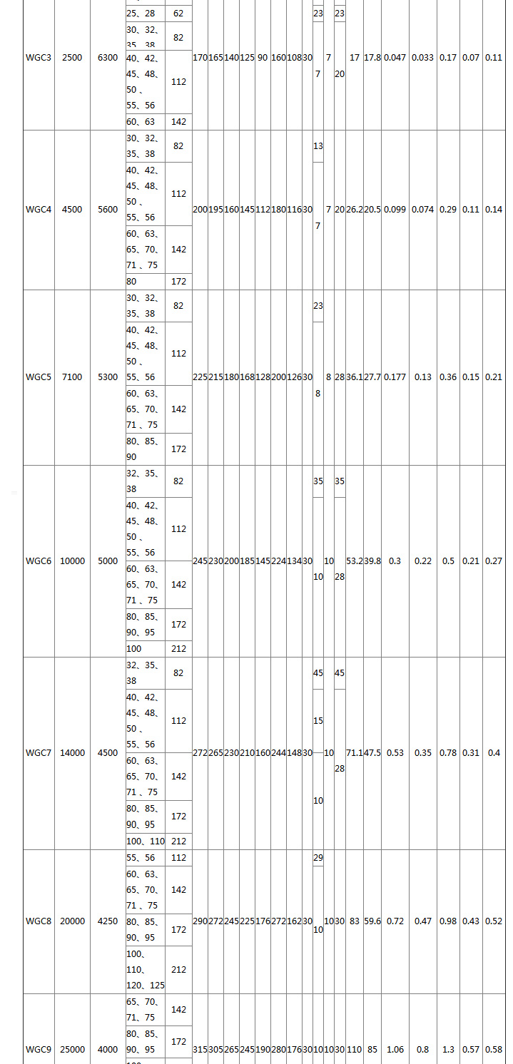 WGT type - connected to the middle sleeve type, suitable for two-axis long-distance connection, the allowable speed [n] depends on the length and quality of the intermediate sleeve, and the critical speed should be checked;
