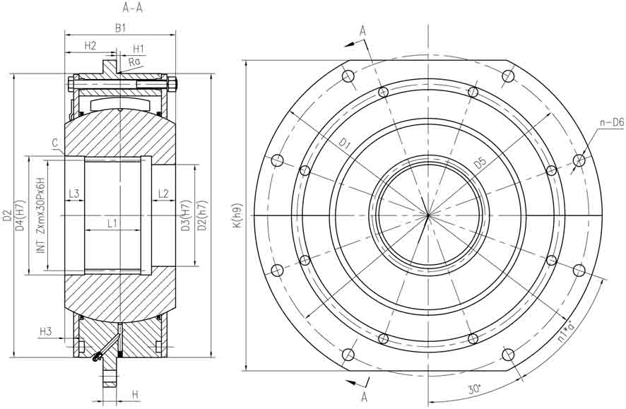WZL內(nèi)花鍵卷筒聯(lián)軸器主要參數(shù)及尺寸: mm