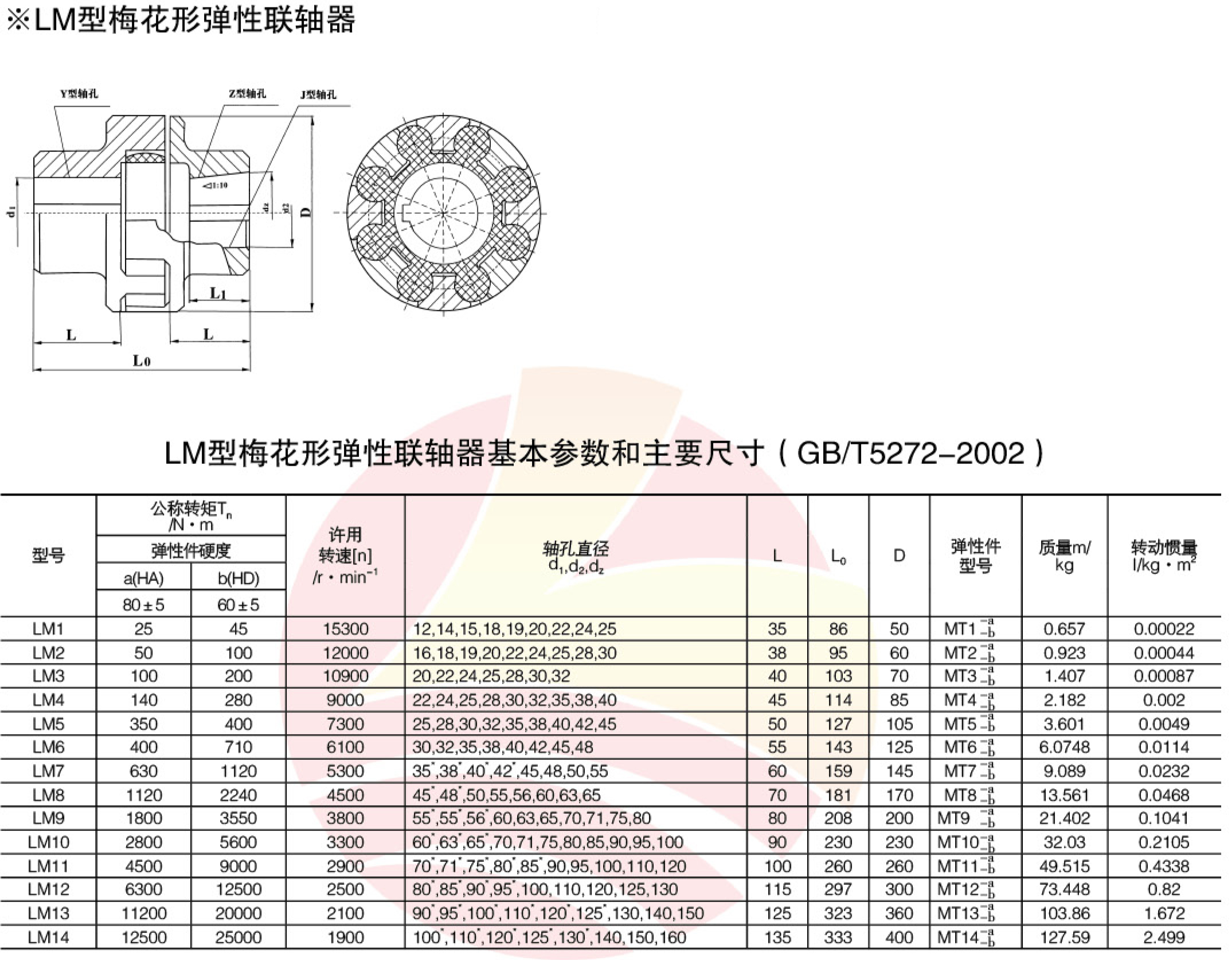 ML(LM)型梅花形彈性聯軸器 特點及應用場合:具有補償兩軸相對偏移、減振、緩沖性能、徑向尺寸小,結構簡單、不用潤滑、承載能力較高,維護方使、更換彈性元件需軸向移動 (MLS型除外),適用于聯接同軸線,起動頻繁,正反轉變化,中速、中等轉矩傳動軸系和要求工作可靠性高的工作部位。不適用于重載、低速及軸向尺寸受艱制,更換彈性元件后兩軸對中困難的部位。